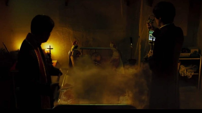 The performances of the two actors are outstanding, but the writing in the early and middle of the film leave a bit to be desired. What makes the movie worth the price of admission is the climactic exorcism scene, a supremely creepy and effective horror scene incorporating practical effects and superb cinematography. It is interesting how Eastern philosophies intermingle with the ostensibly Catholic worldview of the film: references are made to the Buddhist Feast of the Dead, yin and yang energy, and the young deacon is chosen on the basis he was born on the year of the tiger.