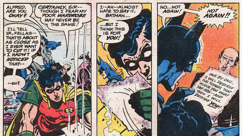 One of the darkest, strangest Batman stories of all time, "Dark City" pits Batman against a version of the Riddler who's far more unhinged than any readers had seen before, and delves into a history of Gotham City that includes founding father Thomas Jefferson participating in a satanic ritual that raised a demon who haunted the city for the next 200 years. Eventually, it's revealed that it's the demon—Barbatos—that's possessing the Riddler, setting up traps where Batman is forced to inadvertently perform dark rites himself, like bathing in blood (from an explosion at a blood bank) to slitting the throat of an infant (to perform an emergency tracheotomy).